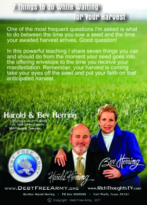 In this powerful teaching Harold & Bev share seven things you can and should do from the moment your seed goes into the offering envelope to the time you receive your manifestation.